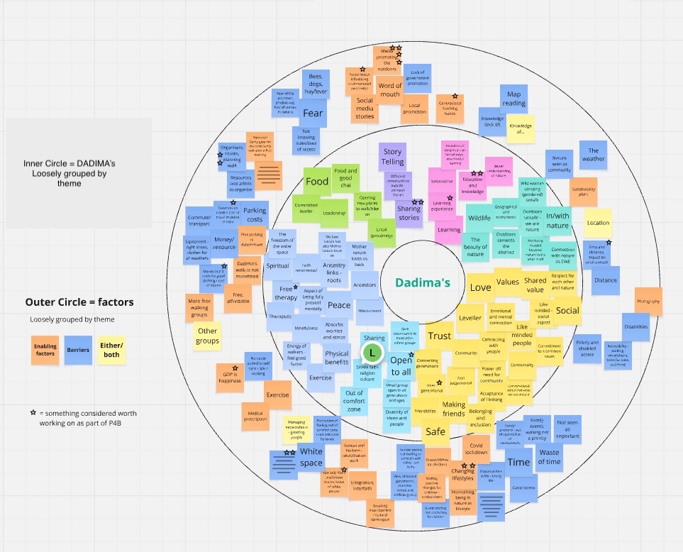 The facilitator (or a colleague assisting with the running of the workshop) might want to take notes in addition to the sticky notes, to document emerging themes - i.e. not just the content of the notes, but the conversation around them.